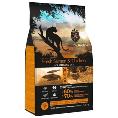 אמברוסיה חתול סלמון ועוף סטרלייזד 5 ק''ג