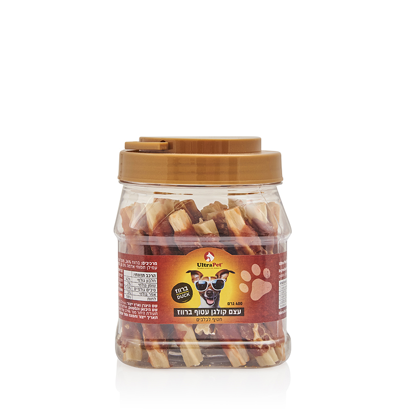 חטיף לכלב בצנצנת עצם עור בקר עטופה סלמון 450 גרם