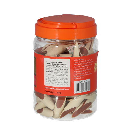 חטיפים לכלבים צנצנת וונפי עוף פסטה 380 גרם