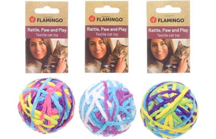פלמינגו משחק לחתול כדור חוטי בד